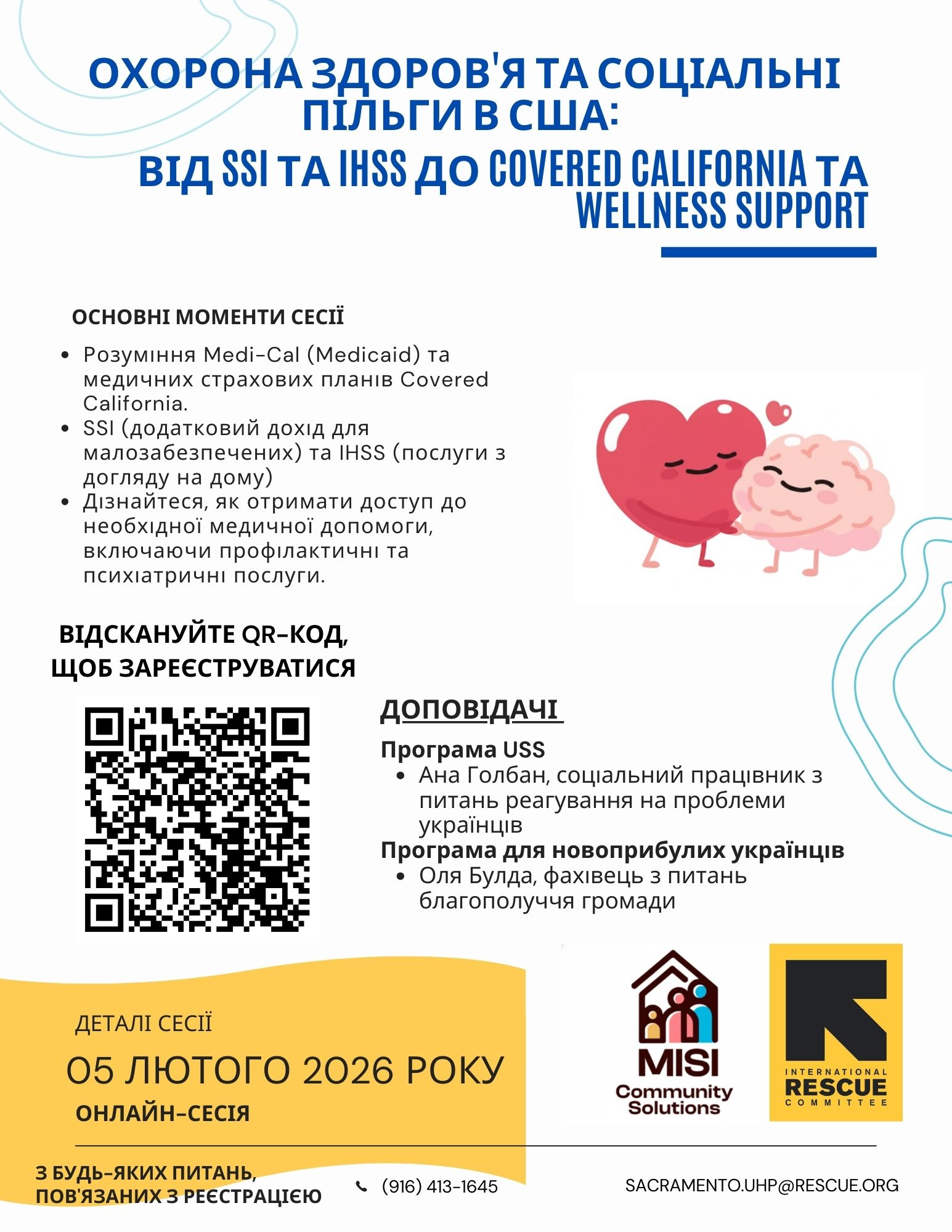 Не розумієте, як працюють Medi-Cal, SSI, IHSS або Covered California? Ми вам допоможемо! Приєднуйтесь до нашої безкоштовної сесії, щоб дізнатися, як подати заявку, на що ви маєте право і як максимально використовувати свої пільги. Ідеально підходить для новоприбулих, сімей та осіб, які здійснюють догляд, які шукають відповіді та ресурси.
